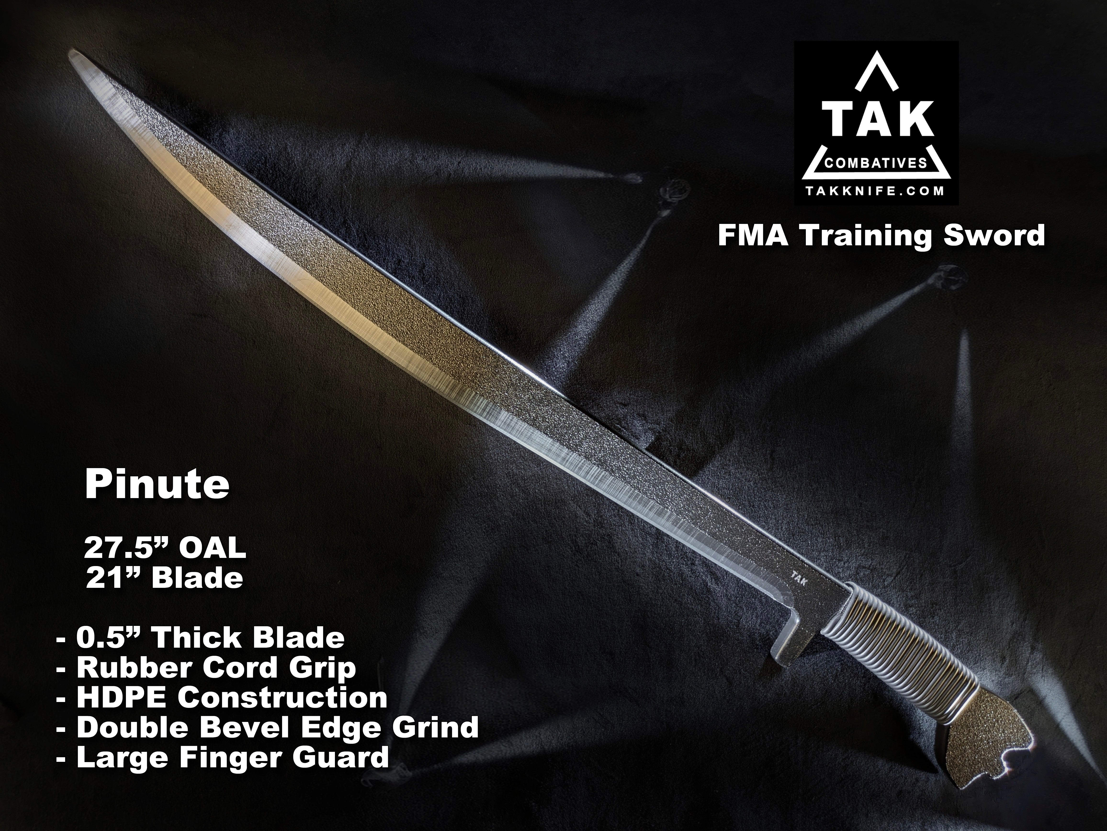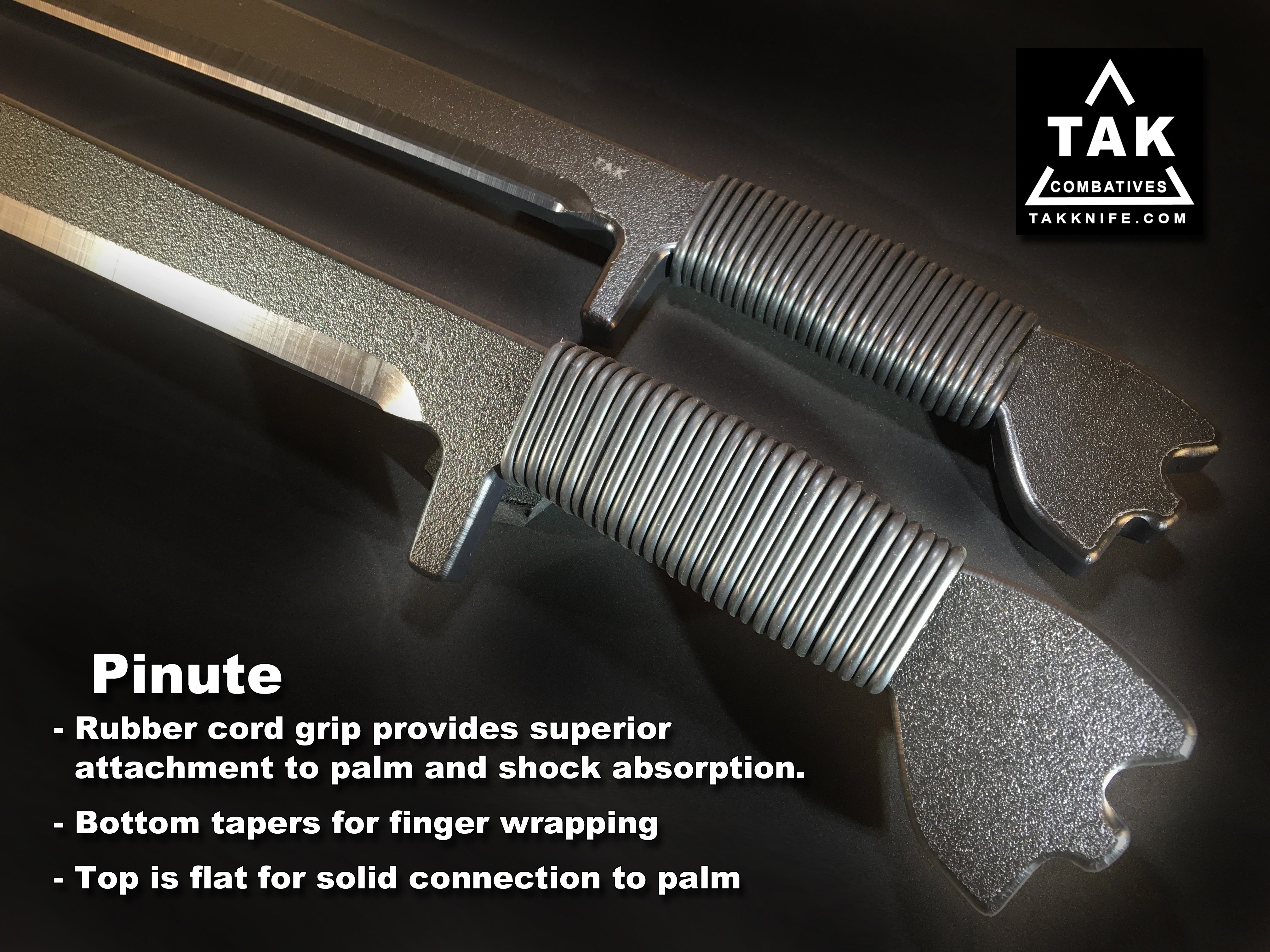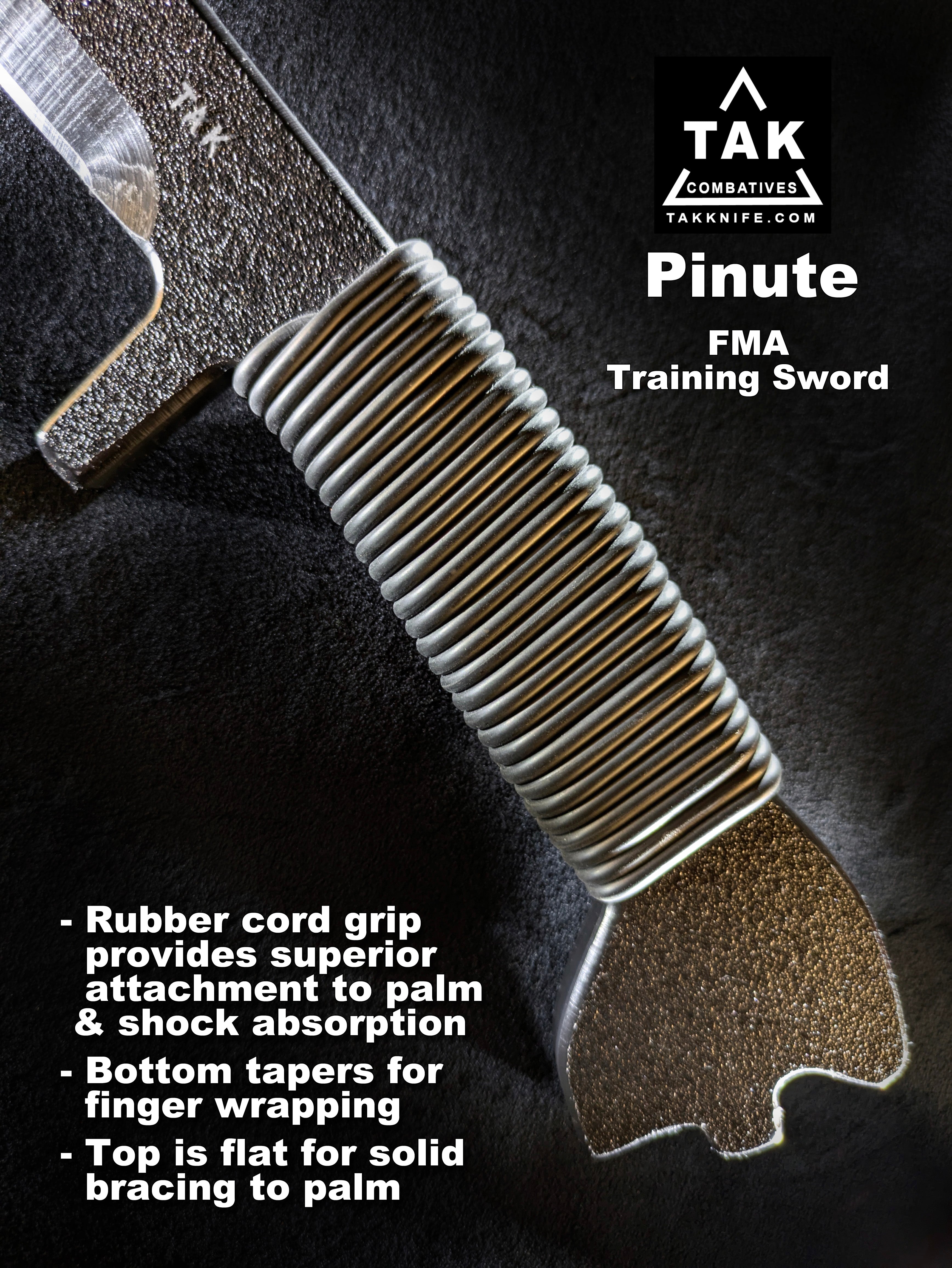 This sword originates from the Visayan islands and like most weapons, has it's practical application for brush clearing, general purpose chopping, etc. In a pinch, it makes a great weapon of self defense. The TAK Training Pinute comes with a rubber cord cord handle which really is the only practical grip for a sword of this size. It is comfortable, absorbs shock, and your hand will have the most secure possible attachment to the tool.